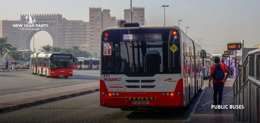 Public buses, like the metro, also operate on extended hours to accommodate the large crowds during NYE in Dubai. However, you should note that routes near major areas can be diverted due to road closures or traffic jams. Moreover, there will be free buses operating to take passengers to Metro stations and designated parking, particularly with heavy Dubai road closures in the Downtown/Burj Khalifa area.