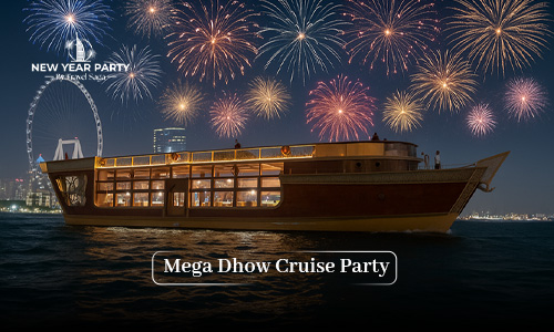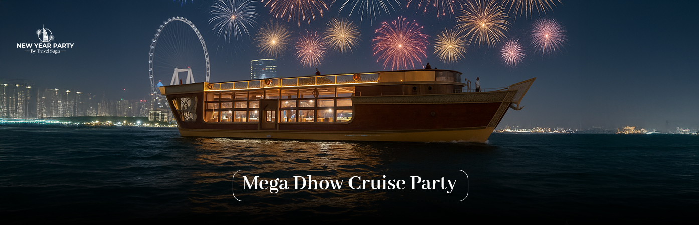- The live entertainment, delicious food, city luxury and vibrancy you experience aboard the dhow make your New Year’s Eve celebrations on the Mega Dhow truly special. Also, add to that the delectable inner served by a 5-star hotel, and your New Year’s Eve 2026 party becomes truly remarkable.